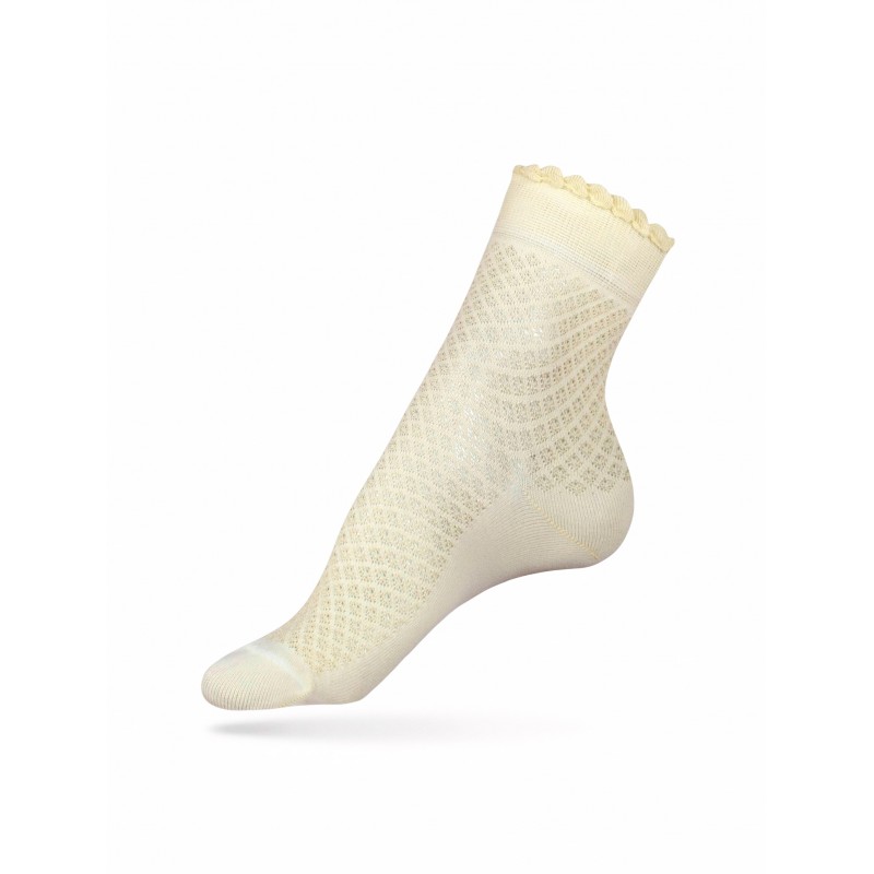 Женские тонкие носки из хлопка, с декоративной резинкой "пикот", с рисунками.