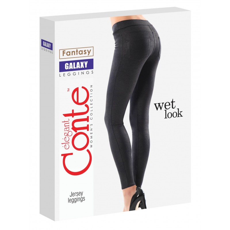 Леггинсы женские облегающие из трикотажного полотна с боковыми швами. По спинке - кокетка из декоративного полотна КОЖА. В боковые швы и шов притачивания кокетки спинки вставленя декоративные молнии. Боковые швы и шов притачивания кокетки с отделочными строчками. Верх изделия обработан широким поясом с широкой резинкой внутри. Шов притачивания пояса с отделочной строчкой.