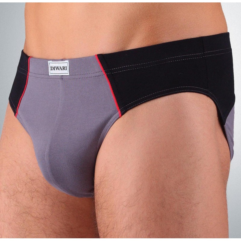 Трусы мужские SLIP из трикотажного полотна. Передняя вставка изделия с контрастным отделочным кантом. Бочки переднего полотнища из контрастного трикотажного полотна. Заднее полотнище из двух частей, верхняя часть из контрастного полотна. Пояс и ножки обработаны эластичной тесьмой швом в-подгибку.
