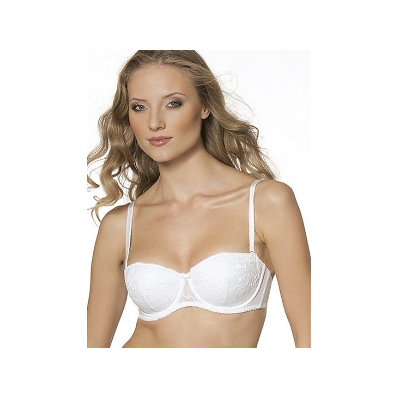 Бюстгальтер Милавица 12036: Бюстгальтер «балконет» из эластичного кружева и эластичного трикотажного полотна. На каркасах. Чашки на дубляже с хлопком. Силиконовая тесьма по верхнему и нижнему краю бюстгальтера. Упругие пластины в боковых деталях стана. Съемные бретели. Отделка – атласный бантик.