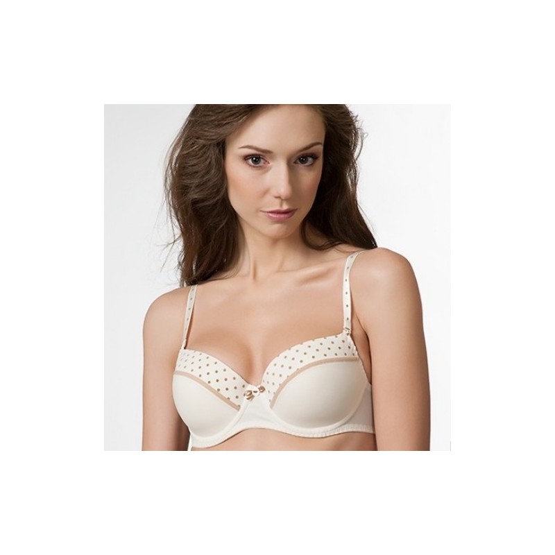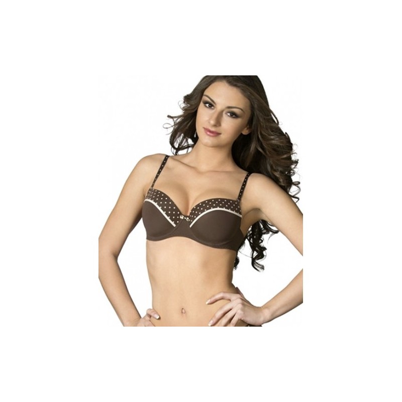 Бюстгальтер Милавица 12144: бюстгальтер из эластичного трикотажного однотонного и набивного полотна с жёсткими формованными чашками. На косточках. Съёмные бретели. Отделка -эластичная тесьма контрастного цвета и декоративное украшение. Серия "Акцент".