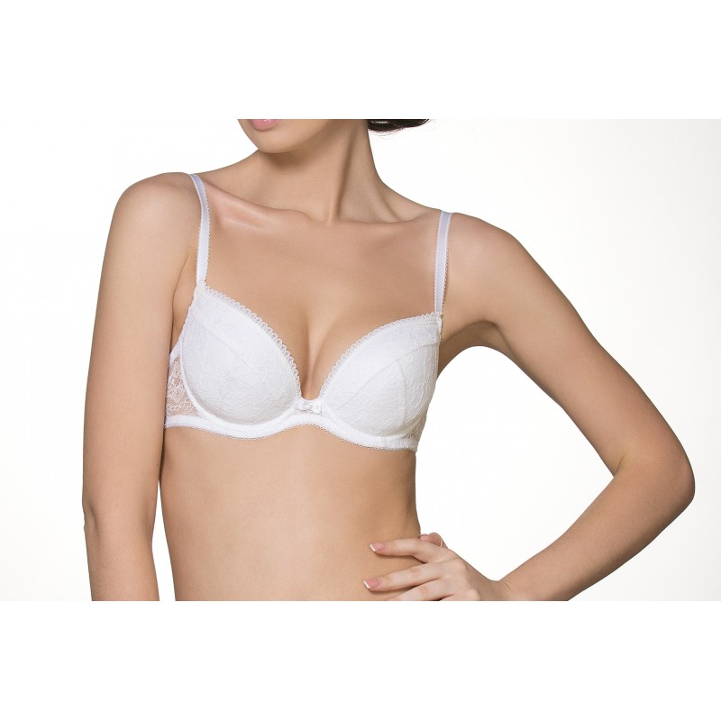 Бюстгальтер Милавица 12178: Бюстгальтер «пуш-ап» из эластичного кружевного полотна. На каркасах. Чашки на дубляже с хлопком, с объемными вкладышами. Отделка – узкое эластичное кружево, бантик.