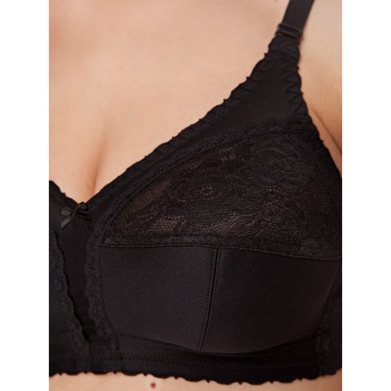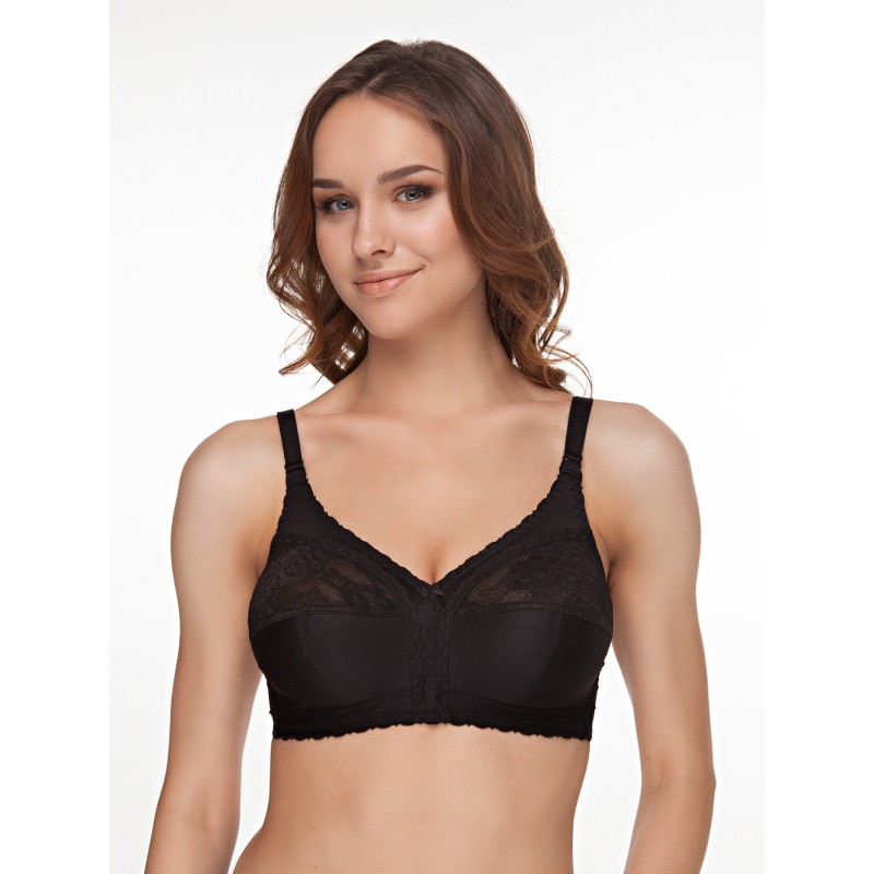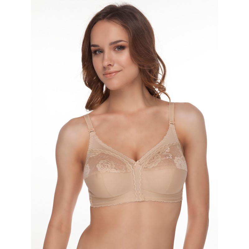 Бюстгальтер Милавица 12408: Бюстгальтер из неэластичного кружевного ламинированного и трикотажного полотен. Без каркасов. Нижние детали чашек из неэластичного трикотажного полотна, ламинированного хлопком. Отделка - узкое кружево и бантик на центральной детали бюстгальтера.