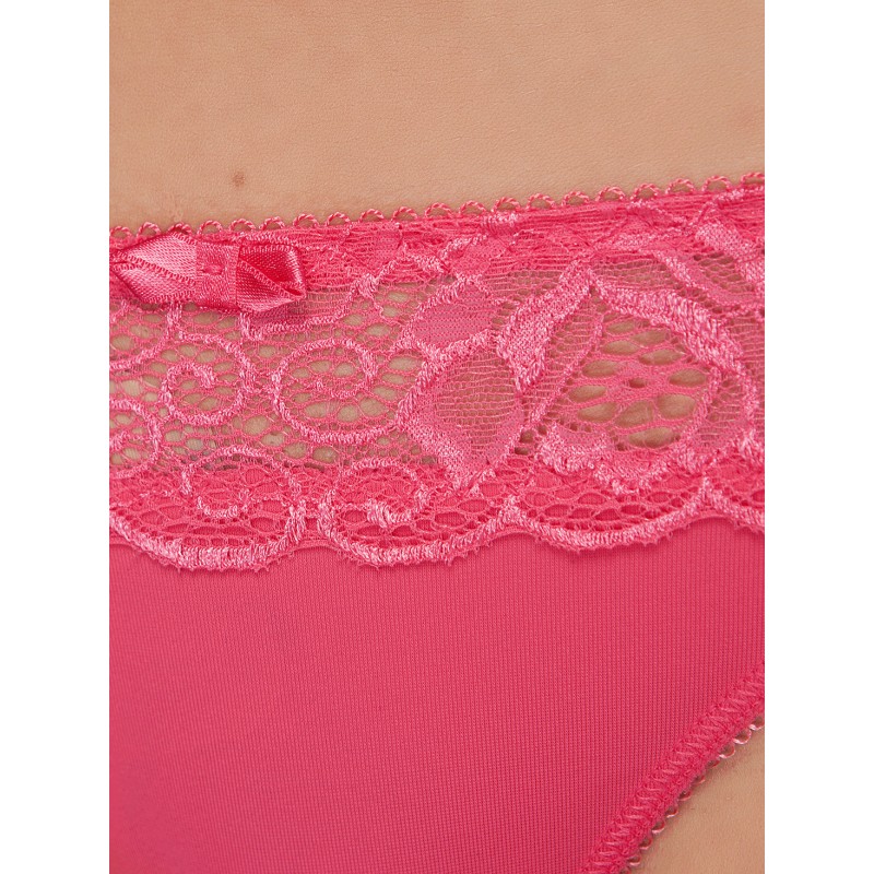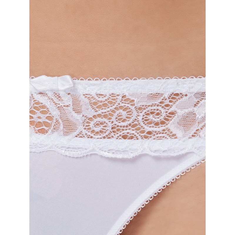 Трусы Милавица 26328: Трусы-стринг из эластичного трикотажного полотна и эластичного кружева. Низкая линия талии. Отделка - атласные бантики.